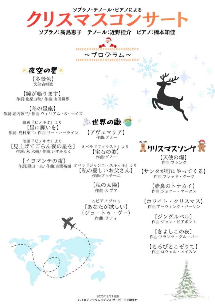 【出演者】高島恵子(ソプラノ)、近野桂介(テノール)、橋本知佳(ピアノ)