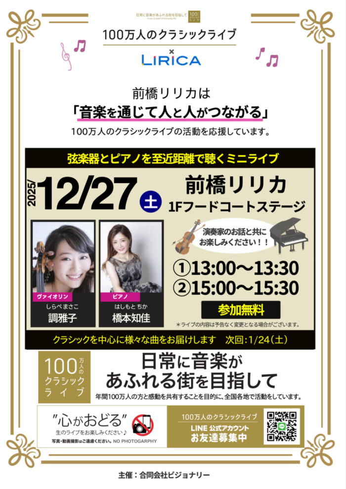 【出演者】調雅子(ヴァイオリン)、橋本知佳(ピアノ)