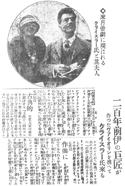 写真は来日時のクライスラー夫妻。