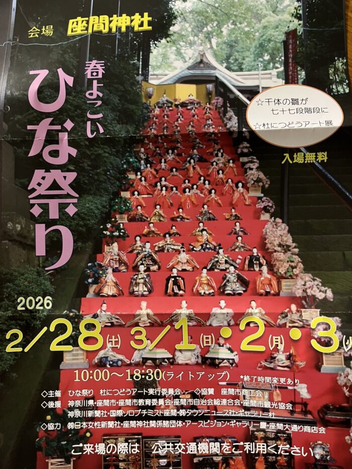 そういえばこの時期になると座間神社という所では、77段の階段に1000体の雛人形が飾られるそうです💡写真で見るだけでも圧巻ですね!